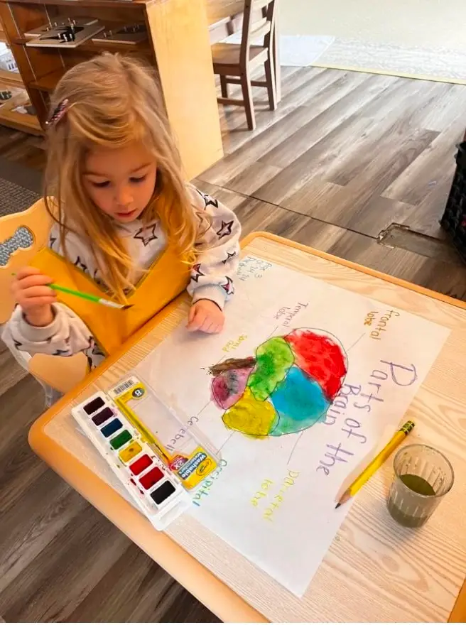 The activities provide aid in development of coordination, concentration, order and independence.  Our classroom materials are “hands on” and engage the child in exploration and study of numbers, phonetics, writing, and reading skills. The classroom offers a variety of cultural subjects such as; history, science, geography, and art.